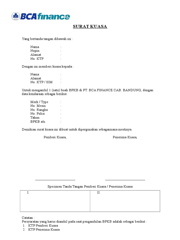 Ada yang pernah membuat surat kuasa enggak ? Biasanya surat kuasa ini berkaitan dengan pengambilan sebuah barang, misalnya. (pemilik bpkb) (yang dikuasakan mengambil bpkb). Bila anda sekarang mendapatkan kabar bahwa bpkb motor atau pun mobil sudah jadi dari pihak leasing atau pun dealer dan anda tidak sempat untuk mengambilnya. Contoh surat kuasa khusus perdata untuk menggugat. Syarat pengambilan bpkb dikuasakan di baf. Contoh surat kuasa pengambilan bpkb ii. Contoh surat pengambilan bpkb di adira finance. Contoh surat kuasa pengambilan bpkb di leasing/bank bila diwakilkan. Pemilik kendaraan hanya cukup datang langsung ke bank atau leasing yang menjadi pemberi kredit. Dalam sebuah perusahaan tentu ada yang namanya. Dibawah ini adalah contoh surat kuasa pengambilan bpkb motor di leasing setelah cicilan kreditnya lunas. Berbeda dengan surat perpanjangan sim, untuk surat kuasa pengambilan bpkb ini berbeda dengan contoh surat kuasa lainnya.