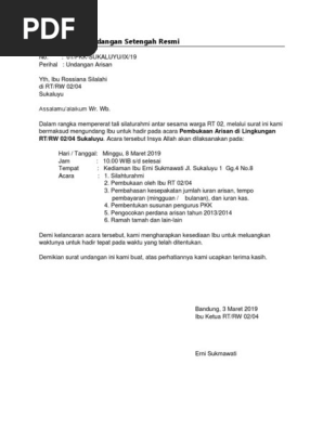 Ketua rw 02 desa cepedak contoh surat undangan setengah resmi pentas seni. Nah di bawah ini terdapat beberapa contoh surat undangan resmi perusahaan yang bisa anda jadikan sebagai sumber referensi terbaik.